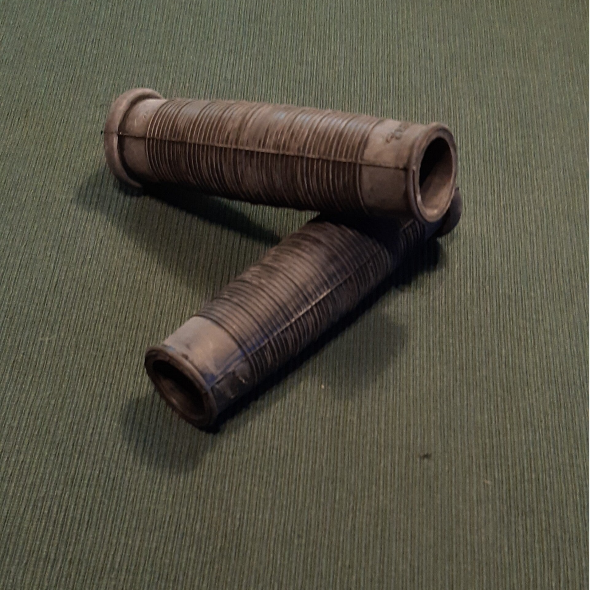 Re-manufactured replica John Bull vulcanised rubber open ended handlebar grips suitable for fitting to handlebars with inverted leavers. Priced per Grip. These grips have a bulged profle.