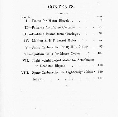 Recently painstakingly recreated, this is a facsimile version of a book first published in 1906. It is a unique record of how to build a motorcycle from scratch. Details of Frame building, casting, building a 3 1/2 HP Petrol Engine and carburettors are all included in this fascinating historic record.