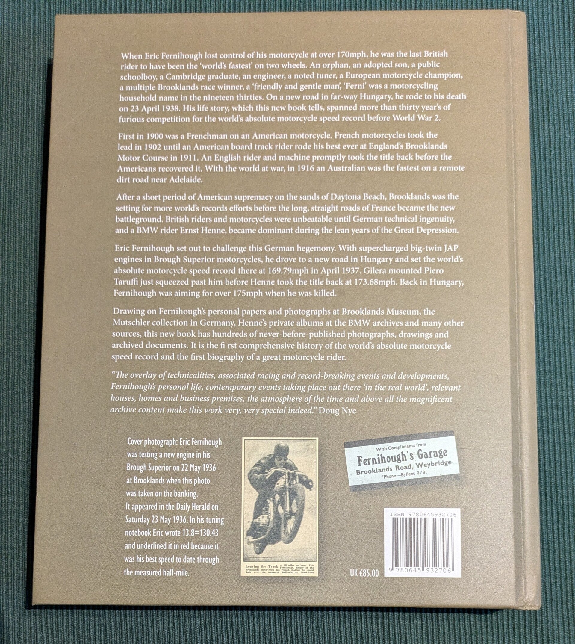 This book, written by Fernihough expert Terry Wright draws on original documentation held at archives in Britain and Europe to compile not only the story of Fernihough’s life, but it also chronicles the history of the motorcycle world record from its inception to the 1930’s